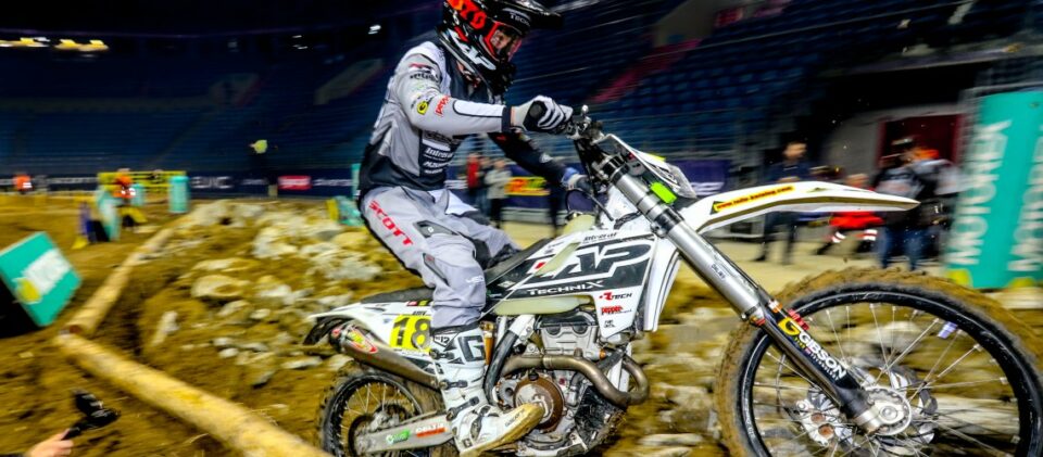 Von der Papierform her die größten Siegchancen hat wahrscheinlich Tim Apolle aus Finne Ortsteil Billroda im Südosten Sachsen-Anhalts. Der ist zwar erst 21 Jahre alt, hat aber in Sachen SuperEnduro schon eine Menge internationale Erfahrung. So war er in den letzten beiden Jahren in der Junior-Klasse der SuperEnduro-WM unterwegs und holte dabei die Endränge drei und sieben. Beim ersten Rennen zum SuperEnduro Europe Cup 2017/2018 im polnischen Krakau fuhr er in seiner eigenen Liga und gewann beide Heats.