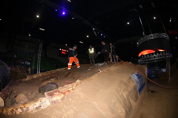 Die letzten Arbeiten an der Strecke zur MAXXIS FIM SuperEnduro WM in der SachsenArena Riesa sind abgeschlossen. Auch die ersten Fahrer sind bereits angekommen und haben sich zu Fuß die wichtigsten Abschnitte bereits angeschaut.