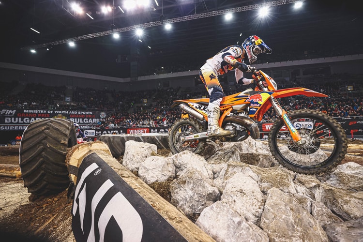 Das Eröffnungsrennen der MotoZ FIM SuperEnduro-Weltmeisterschaft in Bulgarien war voller Spannung und Action, wie es die Fans gewohnt sind. Besonders Jonny WALKER (GBR-Beta) stach als Held des Abends hervor. Trotz Lebensmittelvergiftung kämpfte sich der englische Fahrer durch den Abend und beendete das vorletzte GP der Saison mit bemerkenswerter Leistung auf dem vierten Gesamtplatz, punktgleich mit Will HOARE (GBR-Rieju).