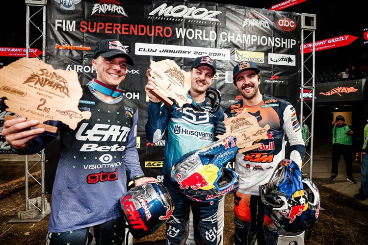 Bei der vierten Runde der FIM SuperEnduro Weltmeisterschaft 2024 in Cluj, Rumänien, hat sich Billy Bolt vom Husqvarna Factory Racing Team zum vierten Mal in Folge den Gesamtsieg gesichert. Trotz einer Knieverletzung, die er sich in der vorherigen Runde in Deutschland zugezogen hatte, zeigte der FE 350 Fahrer eine beeindruckende Leistung und gewann zwei der drei Rennen, wodurch er seinen Vorsprung in der Meisterschaft auf 19 Punkte ausbaute.