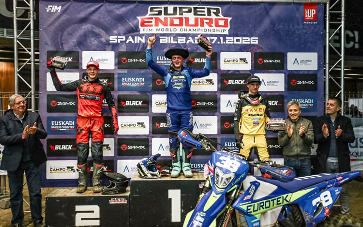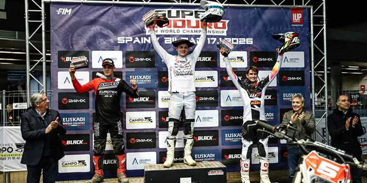 Die dritte Runde der FIM SuperEnduro World Championship 2025/2026 hatte alles, was sich Fans von Indoor-Enduro wünschen: volle Ränge, eine extrem anspruchsvolle Strecke und einen Fahrer, der aktuell einfach in seiner eigenen Liga fährt. In der Bizkaia Arena von Bilbao lieferte Billy Bolt eine absolute Machtdemonstration ab und sicherte sich mit drei Finalsiegen und der schnellsten SuperPole-Runde souverän den Gesamtsieg.