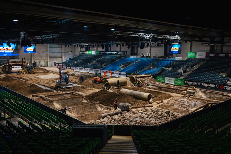 Der eigentliche Streckenbau läuft bereits seit dem 27. Dezember. Über 30 Helferinnen und Helfer formen die Arena zur Spielwiese der Zweirad-Artisten.