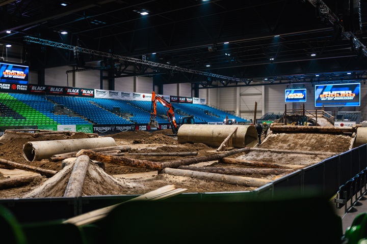 Der eigentliche Streckenbau läuft bereits seit dem 27. Dezember. Über 30 Helferinnen und Helfer formen die Arena zur Spielwiese der Zweirad-Artisten.