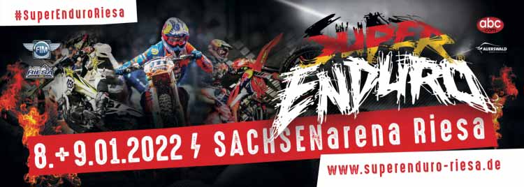 Das SuperEnduro Riesa kommt nach nur einem Jahr Corona-bedingter Pause zurück. Dank größter Anstrengungen des Serienpromoters ABC Communication, des Motorrad-Weltverbandes FIM sowie rühriger lokaler Veranstalter ist es gelungen, für den Winter 2021/2022 wieder eine SuperEnduro-WM-Saison auf die Beine zu stellen. Und das Beste daran ist für unsere Breiten: Riesa ist am 8. und 9. Januar 2022 wieder mit dabei.