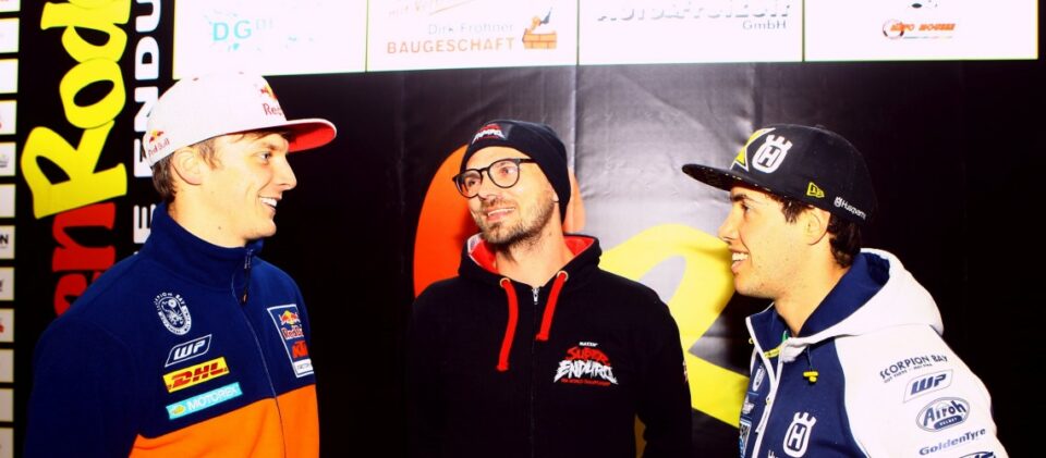 Nachdem bereits in der Vorwoche mit dem Südafrikaner Blake Gutzeit und Tim Apolle aus Sachsen-Anhalt zwei Permanentstarter der Junioren-Klasse der SuperEnduro-WM 2016/2017 beim Enduro-DM-Finale „Rund um Zschopau“ im Erzgebirge im Einsatz waren, kam es am vergangenen Wochenende beim GetzenRodeo zum Wiedersehen mit Top-Ridern der Prestige-Klasse. Beim Extrem-Enduro im Zschopau-nahen Grießbach waren der Brite Jonny Walker und der Spanier Mario Roman mit von der Party – eine Gelegenheit für ein Treffen, die sich das Organisationsduo des am 7. Januar 2017 in der SACHSENarena Riesa stattfindenden zweiten Laufes zur SuperEnduro-WM 2016/2017, die Brüder Daniel und Tobias Auerswald, nicht entgehen ließ.
