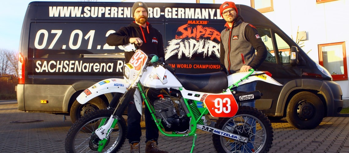 Seit dem Debüt im Januar 2015 haben Daniel und Tobias Auerswald der Veranstaltung der Extraklasse stets auch einen Show-Charakter verliehen und diese unter ein bestimmtes Motto gestellt. 2015 lautete dieses Wald und Holz und im vorigen Jahr, passend zur Stahlstadt Riesa, Metall. Wie viele wissen, feierten DDR-Enduro-Mannschaften 1987 bei den Six Days im polnischen Jelenia Gora mit dem Sieg in der Trophy-Wertung sowie der Silbervase und auch bei den Clubmannschaften einen großen Erfolg, den letzten wirklich großen bis heute. Dies wird 30 Jahre danach zum Anlass genommen, den Besuchern des SuperEnduro Germany die damals erfolgreichen Aktiven zu präsentieren. Nach zahlreichen Telefonaten zeichnet es sich derzeit ab, dass die damaligen Trophy-Sieger Jens Thalmann, Reinhard Klädtke, Harald Sturm, Uwe Weber, Jens Grüner und Jens Scheffler, die Silbervasen-Gewinner Thomas Bieberbach, Danilo Pörschke, Mike Heydenreich und Udo Grellmann sowie die damals siegreiche Clubmannschaft mit Jens Fabig, Andreas Cyffka und Mike Sydow am 7. Januar 2017 in der SACHSENarena mit etlichen Originalmotorrädern geschlossen zu Gast sein werden und ihren Teil dazu beitragen, den Fans einen weiteren unvergesslichen Abend zu bereiten.