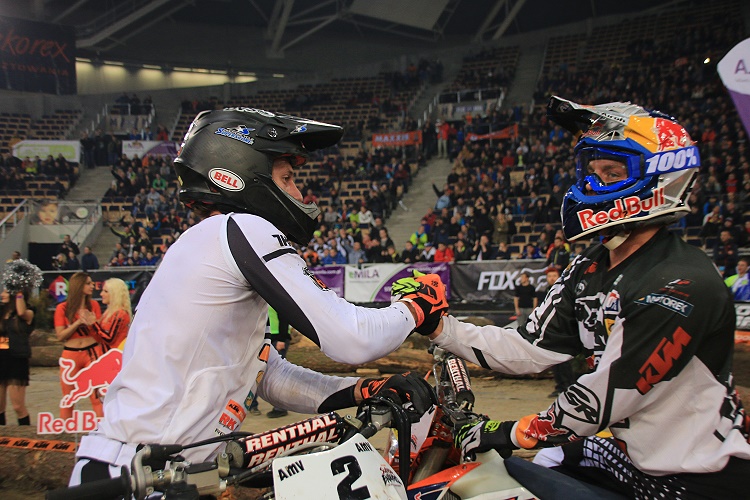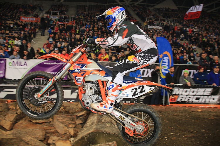 Da er in den beiden ersten Läufen auf Rang 4 und 3 fahren konnte reichte es in Addition aller Läufe dennoch zu Platz 3. Das Podest war eine reine KTM Angelegenheit. Cody Webb ist im vollen Endurocrossmodus derzeit, denn er kommt direkt vom Finale der Amerikanischen Serie. Diesen Vorteil nutzte er für den Sieg im ersten und dritten Final. In Addition dieser beiden Siege und Rang 6 im 2. Lauf holte er sich den Tagessieg vor Jonny Walker.
