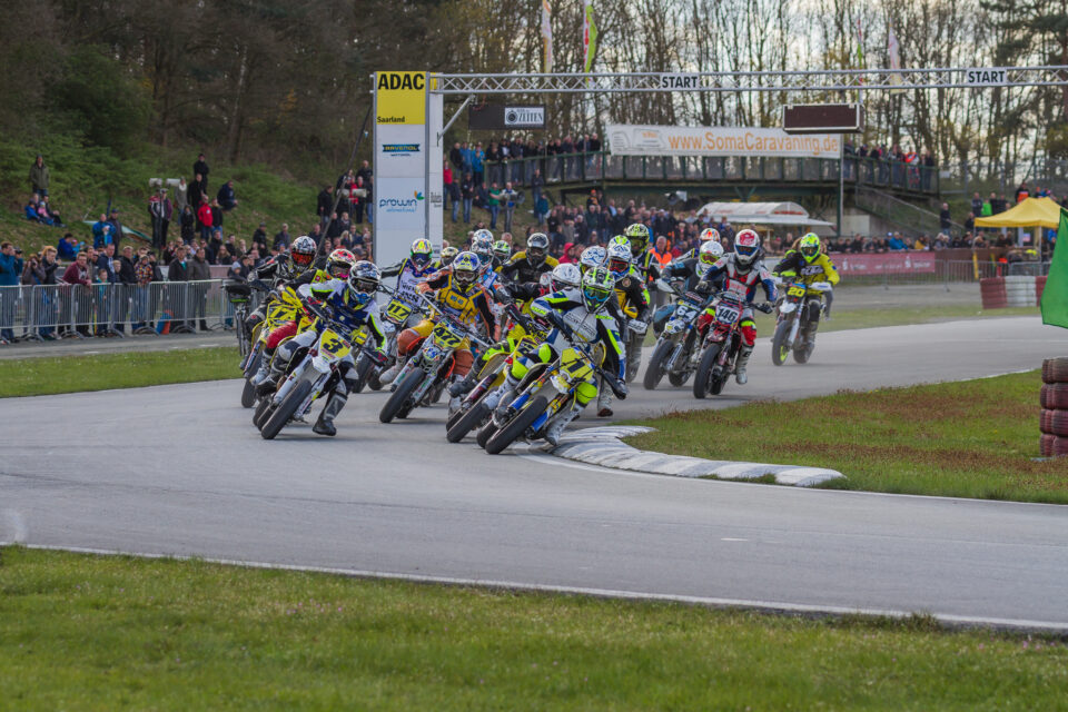Was für ein Start in die SuperMoto IDM 2016! Gut bis sehr gut gefüllte Startfelder in allen Klassen, viele spannende Rennen, eine ordentliche Zuschauerkulisse und letztendlich sogar Sonnenschein prägten den Auftakt in Harsewinkel. Im traditionsreichen Emstalstadion sorgte dann auch noch Lokalmatador Andre Plogmann (Suzuki) mit einem Doppelsieg in der S1 für Begeisterung.