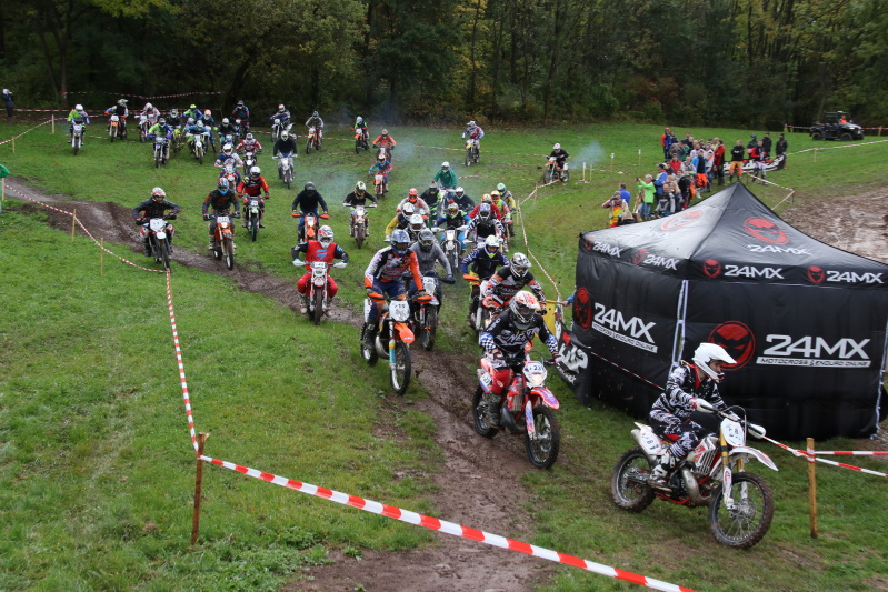 Der Verein hatte aber bereits gestern vorgesorgt und viele Streckenteile verändert. Auch die Motorcross Strecke haben Sie nochmals frisch geschoben so daß es heute dann doch relativ gut zu fahren ging. Leider wurden die Mühen aber nur von 38 Teams belohnt. Ursprünglich standen über 60 Teams in der Starterliste, darunter große Namen wie Edward Hübner, Nick Emmrich, Daniel Hänel, Kevin Zdon und Arne Mösch. Keiner dieser Topfahrer ließ sich aufgrund des Wetter´s in Großlöbichau sehen.
