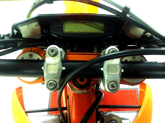 Die Sitzposition ist durch die leichte Kröpfung sehr angenehm und sportlich. Beim Fahren im Gelände fällt nichts Außergewöhnliches auf. Durch die nicht vorhandene Mittelstrebe ist der Lenker sehr virbrationsarm und hat eine dämpfende Wirkung. Die Strebe dient in erster Linie zur Stabilität das Lenkers, was aber hier durch das hochwertige Material nicht nötig ist. Der Lenker war jetzt über 35 Betriebsstunden im harten Sporteinsatz und hat so einige „Umfaller“ und „Rutscher“ beim Erzberg-Rodeo-2013 über sich ergehen lassen. Passiert ist nix, auch kein Verbiegen. Sicher lässt sich jeder Lenker krumm machen. Es ist eben „nur“ ein Lenker. Aber eine gute Alternative zum Serienprodukt. Kostenpunkt des Lenkers: 69,00 €.