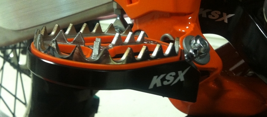 Wer kennt es nicht, von den Rasten abgerutscht und der Grip am Hinterrad an der langen Auffahrt die man unbedingt schaffen wollte, war futsch. Abhilfe sollen dabei die Factory Line Fußrasten von KSX schaffen. Mit einer Rastenbreite von 57 mm und einem spitzen Edelstahl Zahnkranz soll ein sicherer Stand gewährleistet sein. Gefertigt aus CNC gefrästen Aluminium mit schicken auswechselbaren Silikoneinlagen. Der größte Vorteil scheint mir der ebenfalls auswechselbare Edelstahl Zahnkranz, den man für nur 15,90 € nachbestellen kann. Auch die Silikoneinlagen sind mit 5,90 € erschwinglich und in sechs verschiedenen Farben erhältlich. Das high End Produkt gibt es für fast alle gängigen Marken wie zum Beispiel hier im Test für die KTM.