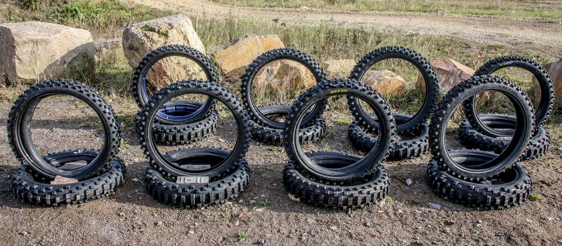 Nachdem unser FIM Enduroreifentest 2015/2016 sehr gut bei allen Lesern ankam, worden die Fragen nach einem Extrem-Enduroreifentest immer häufiger gestellt. Das ist natürlich berechtigt zumal die Extrem-Enduroveranstaltungen sich häufen und immer mehr Fahrer einen geeigneten Reifen suchen. Mittlerweile gibt es auch immer mehr Marken, die einen expliziten Extreme-Enduroreifen bzw. eine komplette Kombination aus Vorderreifen, Hinterreifen und einen passenden Mousse im Angebot haben. Insgesamt 8 Reifenpaare mit Mousse haben wir genauer unter die Lupe genommen, darunter sind die Marken Gibson, X-Grip, Shinko, Mefo, Maxxis, Metzeler und Mitas. Es besitzen jedoch nicht alle Marken einen eigenen Mousse bzw. einen passenden Extrem-Enduromousse, so dass die Hersteller direkt eine Moussemarke empfehlen und der Verbraucher im Endeffekt das beste aus der Reifenkombination heraus holen kann. Der Mousse sollte den Reifen ausfüllen und dennoch weich genug sein, um den Reifen eine breite Auflagefläche zu bieten. Da jeder Reifen eine unterschiedliche Reifenhöhe und -breite besitzt ist ein passender Mousse notwendig. Ansonsten kann es dazu führen, das der Reifen einen schlechteren Seitenhalt bietet und das Fahren schwammig und instabil wird. In unseren Test haben wir viele Faktoren mit aufgeführt, dazu gehören Profiltiefe, Stollenabstand, Reifendimension, Laufrichtung, FIM zugelassen und auch die Wechseleigenschaften sind unterschiedlich ausgefallen. Als Testgelände stand uns die Strecke vom Melz-Exdrähm vom SHC Meltewitz e.V. zur Verfügung. Da konnten unsere beiden Testfahrer Eddie Findling, als erfahrener Extrem-Endurofahrer und Marko Barthel als Allrounder alle Facetten eines Extremenduroreifens bestens beurteilen. Getestet wurde auf einen festgelegten Streckenabschnitt, damit jeder Reifen unter den selben Bedingungen zum Einsatz kommt. In der Strecke gab es unter anderem steile Auffahrten mit Wurzeln und Steine, steile rutschige Abfahrten, schräge Hangpassagen, Felsüberfahrten, lose Geröllpassagen, diverse Hindernisse aus Holz und Beton sowie einige schnelle Abschnitte mit Hartboden und schnellen Kurvenelementen. Das passende Motorrad wurde uns von RMA Offroadshop zur Verfügung gestellt und zwar die neue GasGas EC 300, welche bestens geeignet war für diesen Test. Nun, bleibt die Frage nach dem ultimativen Extrem-Enduroreifen – gibt es diesen überhaupt? Unser Extrem Enduroreifentest 2017/2018 gibt euch im folgenden Testbericht die Antwort auf diese Frage.