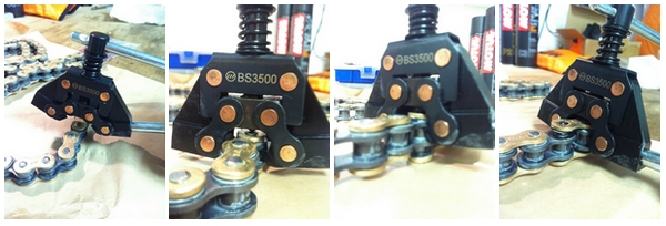 Die Funktion ist eigentlich selbsterklärend. Die Kette wird zwischen den beiden Backen gespannt und man dreht einen Dorn über ein Gewinde mit wirklich wenig Kraftaufwand auf den Kettenbolzen. Dieser gibt dann nach und wird rausgedrückt. Das wiederholt man dann einfach am zweiten Bolzen. So genial einfach und doch gleichzeitig genial durchdacht.