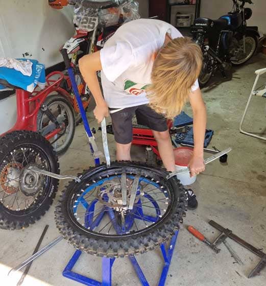 Der Montageprozess war ein entscheidender Teil unseres Tests. Der Mousse wurde mit Silikonpaste behandelt und ließ sich leicht in die Reifen einlegen. Sowohl der Vorder- als auch der Hinterreifen konnten problemlos montiert werden. Besonders beeindruckend war, dass die jungen Fahrer unter Anleitung selbst Hand anlegen konnten, wobei ein Montageständer zum Einsatz kam.