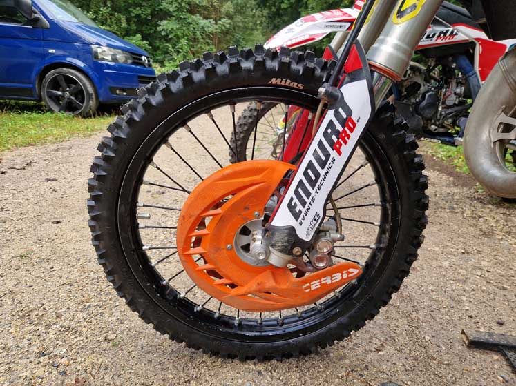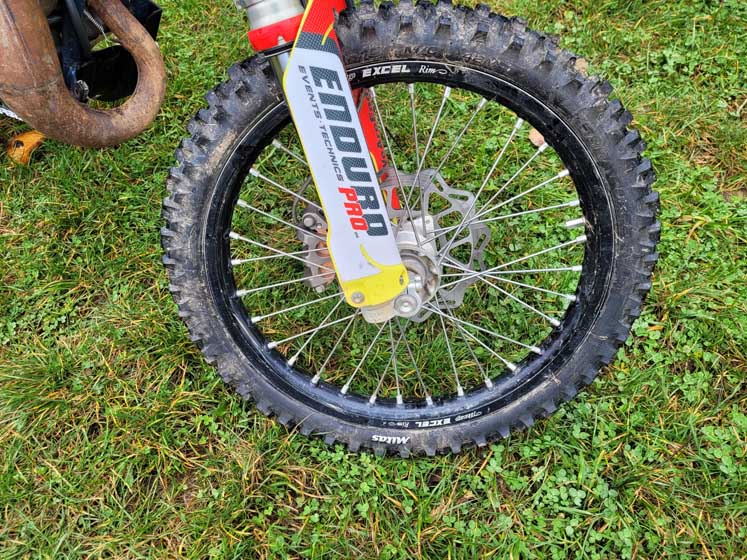 Bei den Tests auf verschiedenen Untergründen, wie feuchtem Ackerboden mit Stroh, zeigte sich die Reifen-Mousse-Kombination von ihrer besten Seite. Sie bot ausgezeichneten Halt in Kurven und auf weniger griffigen Böden. Besonders hervorzuheben ist die Traktion des Terra Force-MX MH in Kombination mit dem Mousse, die auf nassen, rutschigen und anspruchsvollen Endurosektionen überzeugte. Der relativ niedrige „Reifendruck“, eine Besonderheit des Mousse, ermöglichte eine breite Auflagefläche und somit einen sehr guten Vortrieb.