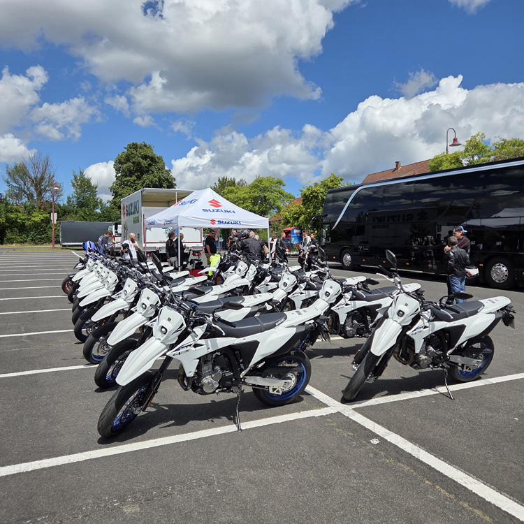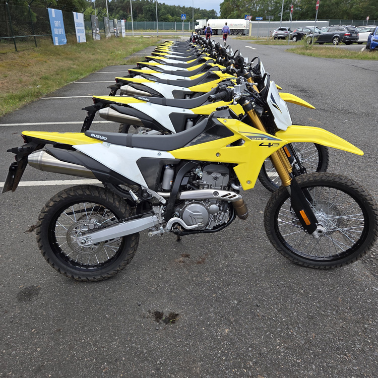 Gleich zu Beginn ging’s auf einen kleinen Offroad-Parcours – inklusive Challenge: Tempo, Hindernisse und kein Fuß auf den Boden. Und gleich vorweg: Die neue DR-Z fährt sich butterweich!