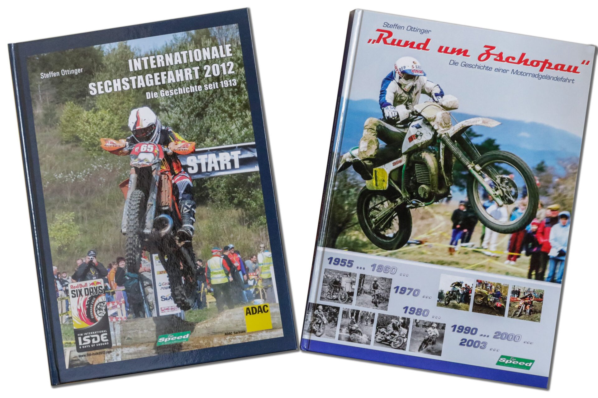 Für Freunde des Motorradgeländesports gibt es bereits am Tag vor dem Enduro-Klassiker „Rund um Zschopau“ einen Höhepunkt. Am Freitagnachmittag, also wenige Stunden bevor um 19 Uhr im MZ-„Neuwerk“ in Hohndorf der Startschuss zum Prolog fällt, findet in Flöha eine Autogrammstunde mit dem Motorsportjournalisten Steffen Ottinger aus Frankenberg und dem mehrfachen Deutschen Meister Marcus Kehr statt. Ottinger, der über drei Jahrzehnte als Fotograf auf Geländepisten im In- und Ausland unterwegs war, ist Autor der Kult-Bücher „Rund um Zschopau. Die Geschichte einer Motorradgeländefahrt“ (Teil 1 und 2) sowie „Internationale Sechstagefahrt 2012. Die Geschichte seit 1913“. Alle drei Bücher können bei der Autogrammstunde in Marcus Kehrs „Offroad-Shop“, den der Geländefahrer im Juni in seiner Heimatstadt eröffnet hat, gekauft werden. Für Fans eine prima Gelegenheit, sich die reichlich bebilderte „Pflichtliteratur“ vom Autor und von Kehr, der auf dem Titel von „Rund um Zschopau“, Band 2, und auf dem des „Six Days“-Buches in Aktion zu sehen ist, persönlich signieren zu lassen sowie mit beiden Experten ins Gespräch zu kommen. Zum Prolog am Freitagabend und zur Geländefahrt am Samstag ist Marcus Kehr in diesem Jahr verletzungsbedingt nicht am Start.