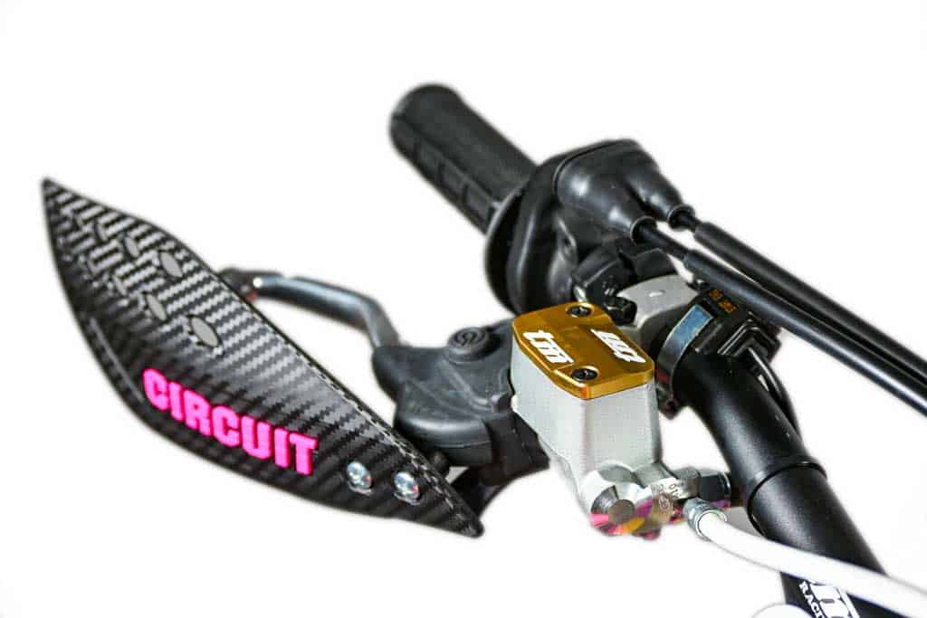 Zusätzlich zu der ikonischen „pinken“ Farbgebung sind die Motorräder mit einem Satz Rennzubehör verschönert, das speziell für diese Modelle hergestellt wurde: