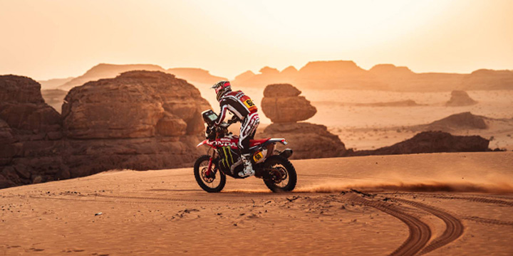 Nach einem eher verhaltenen Auftakt in die Dakar-Woche meldete sich Schareina eindrucksvoll zurück. Trotz eines kleinen Sturzes ließ sich der Honda-Pilot nicht aus dem Konzept bringen. Nach kurzem Aufrappeln drückte er auf seiner Honda CRF450 RALLY weiter kompromisslos an.