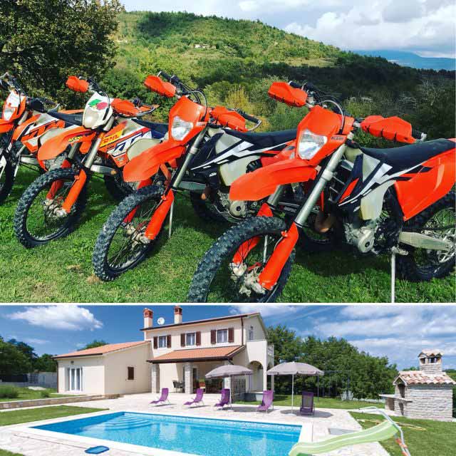 Enduro-Fahrer die an unseren Touren teilnehmen, werden in einem unserer Ferienhäuser mit Doppel- und Einzelzimmern untergebracht, wobei Frühstück und Abendessen im Preis inbegriffen sind! Alle Häuser befinden sich im Zentrum von Istrien und alle haben direkten Zugang zu Off-Road-Routen. Jeden Tag beginnen die Enduro-Touren mit unserem Guide vor dem Haus!