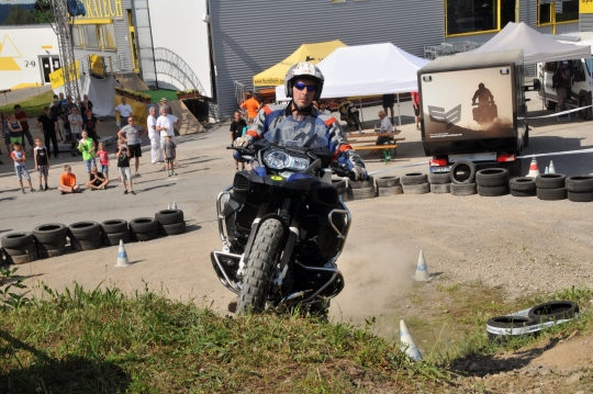 Aber auch auf dem Touratech-Gelände war den ganzen Tag über etwas geboten: Showfahrten, Workshops und Vorträge gehörten ebenso zum Programm wie Betriebsführungen, Interviews mit Ausstellern und Motorradpräsentationen auf der Hauptbühne. Der Preis für die weiteste Anreise ging an Eugene Bobrikov aus Moskau, der mit seiner F 800 GS 3000 Kilometer zurückgelegt hatte, um beim Travel-Event dabei zu sein.