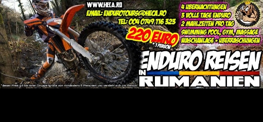 Für NUR 220 Euro könnt ihr 3 Tage Endurofahren. Erhaltet pro Tag 2 Mahlzeiten und dazu auch noch 4 Übernachtungen in einer Pension der Region. Das alles mit einen Professionellen Guide der sich in der Region bestens auskennt.