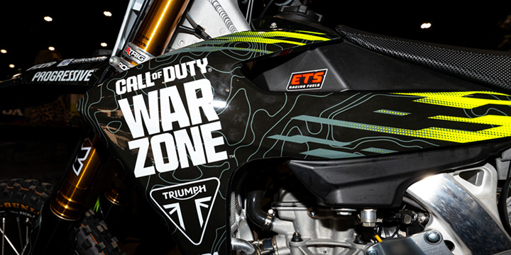 „Offizieller Motorradpartner von Call of Duty: Warzone zu sein, ist ein echter Meilenstein für Triumph“, sagt Ian Kimber, Head of Global Racing Programmes bei Triumph Motorcycles. „Dass unser TF 250-X im Spiel vertreten ist, gibt uns die perfekte Gelegenheit, diese Partnerschaft mit unserem SuperMotocross-Team auf einzigartige Weise zu feiern. Unsere Fahrer sind selbst begeisterte Call of Duty-Spieler und freuen sich riesig auf den speziellen Look. Ich bin sicher, unser Auftritt wird in den Paddocks von Birmingham und Seattle für Aufsehen sorgen.“