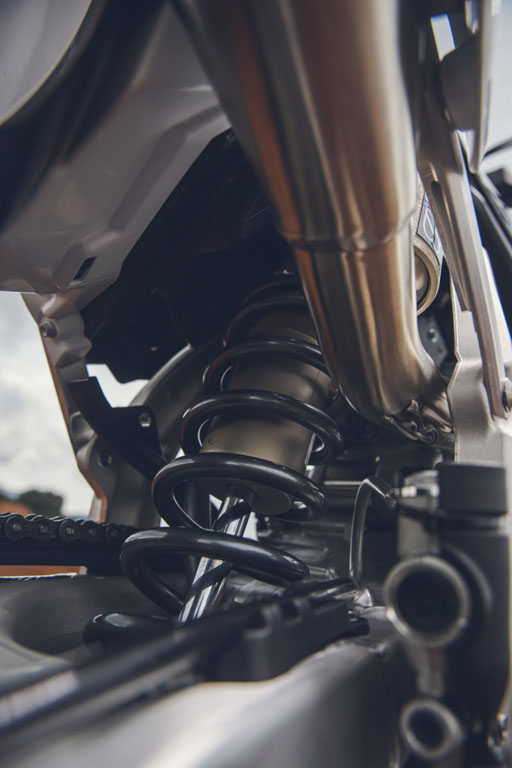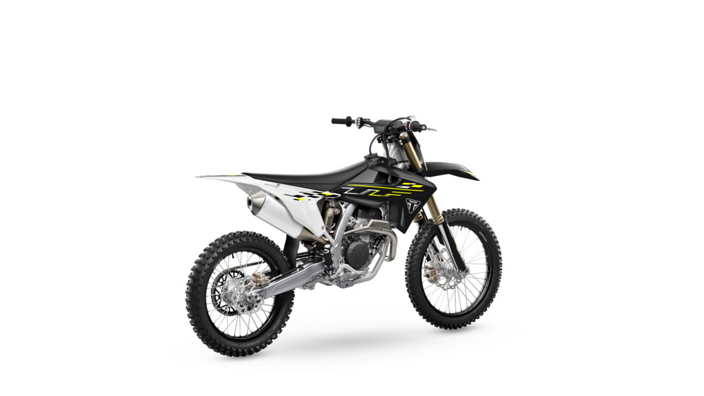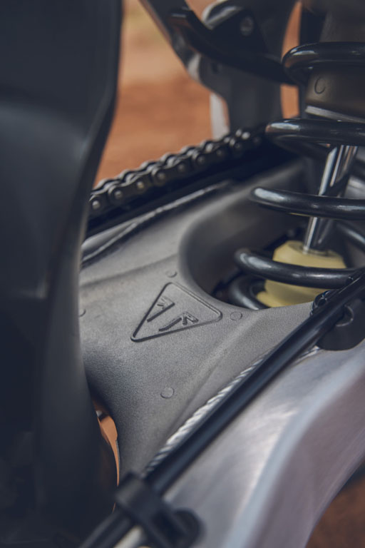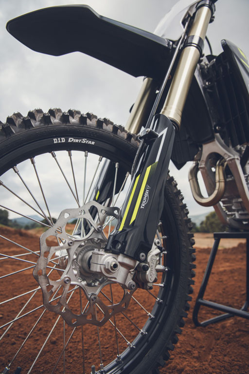 TRIUMPH hat das Fahrwerk gezielt überarbeitet: Mehr Kontrolle im mittleren Federwegsbereich, bessere Chassis-Balance und spürbar mehr Grip in Kurven machen die TF 250-X jetzt noch berechenbarer – bei maximalem Speed.