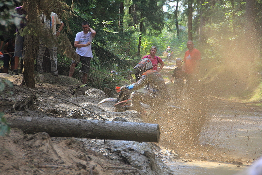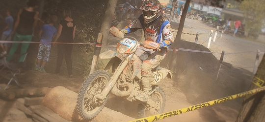 Auch am Renntag hatte die Challenge ebenfalls mit Problemen zu kämpfen. Eigentlich ist es in Neuhaus-Schierschnitz immer nass, zwar gab es einige wenige Schlammlöcher die die Fahrer auch zum verzweifeln brachten. Probleme gab es diesmal aber mit den Staub, die zweite Sonderprüfung auf den Feld musste in der dritten Runde sogar ganz gestrichen werden. Aber auch in Runde 1 und 2 gab es dort enorme Sichtprobleme. „Ich konnte nicht mein volles Tempo fahren, es ist zu staubig sodass man die nächste Kurve gar nicht gesehen hat.“ sagte der Enduro 1 Pilot Markus Groschopp nach den Rennen.