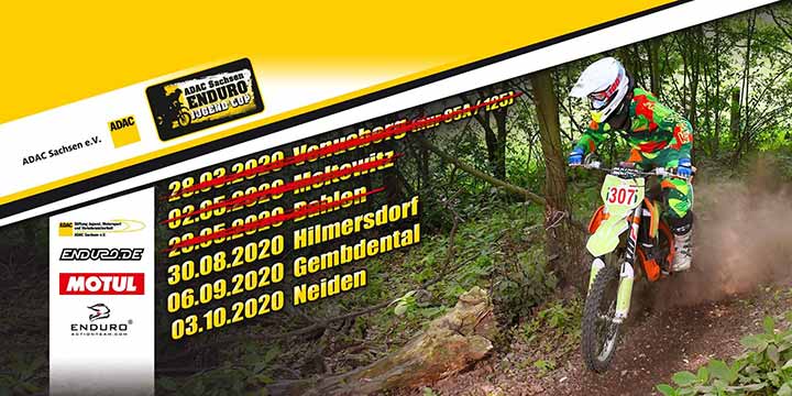 Aufgrund der derzeitigen Entwicklungen hinsichtlich des in Europa grassierenden Coronavirus und der damit einhergehenden Einschränkungen werden die ersten drei Läufe des ADAC Sachsen Enduro Jugend Cup in Venusberg, Meltewitz und Dahlen nicht ausgetragen.