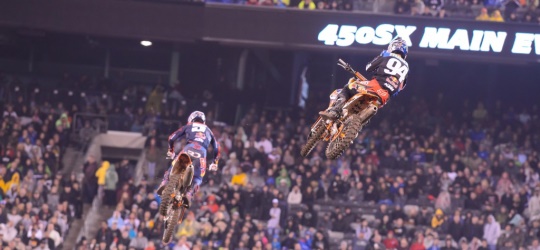 Ken Roczen und Ryan Dungey, die Fahrer des Red Bull KTM Teams in der US-Supercross-Meisterschaft, erkämpften beim vorletzten Saisonrennen in East Rutherford erneut Top Ten- Plätze. Roczen, deutscher Motocross-Star aus dem thüringischen Mattstedt, eroberte Platz Fünf. Teamkollege Dungey wurde Sechster. Beide pilotieren eine KTM SX-F 450.