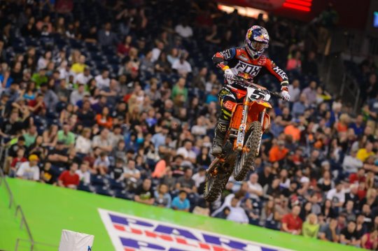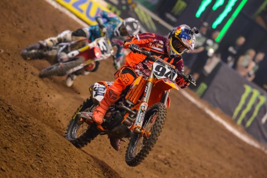 Beide Red Bull KTM-Werksfahrer glänzten in den Quali-Läufen mit sehenswerter Fahrkunst und tankten sich problemlos ins Finalrennen vor. Dungey raufte in Heat 1 mit James Stewart, Justin Barcia und Josh Grant und schnappte sich einen tadellosen zweiten Rang. Ken Roczen trat in Heat 2 an und kämpfte sich von Rang 5 nach dem Start vor bis auf Platz 2, wobei er an KTM-Markenkollege Andrew Short noch in der letzten Runde erfolgreich vorbei ziehen konnte.