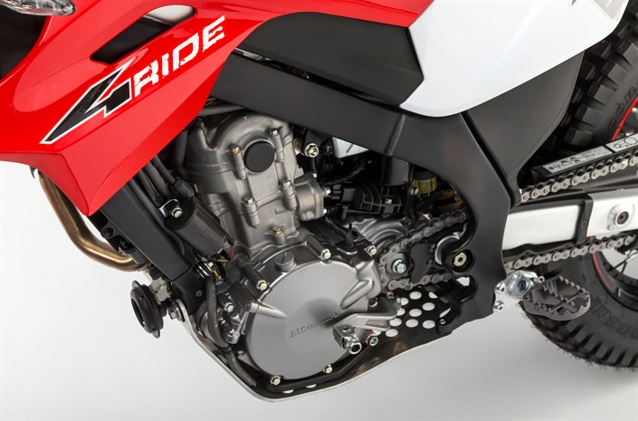 Der Motor der 4RIDE basiert auf dem 258,9 ccm Viertakt-Triebwerk der Cota 4RT260 und der Race Replica.