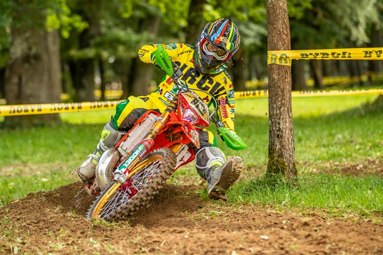 Was für ein Auftritt von Loïc LARRIEU (FRA-TM)! Von den französischen Fans ermutigt, attackierte er am Sonntag den ganzen Tag und gewann nicht weniger als 6 Tests. Der TM-Fahrer baute seinen Vorsprung auf intelligente Weise aus, behielt das Tempo seines Gegners im Auge und erhöhte es nur bei Bedarf. LARRIEU holt seinen ersten Weltmeistertitel in E2 auf heimischem Boden!