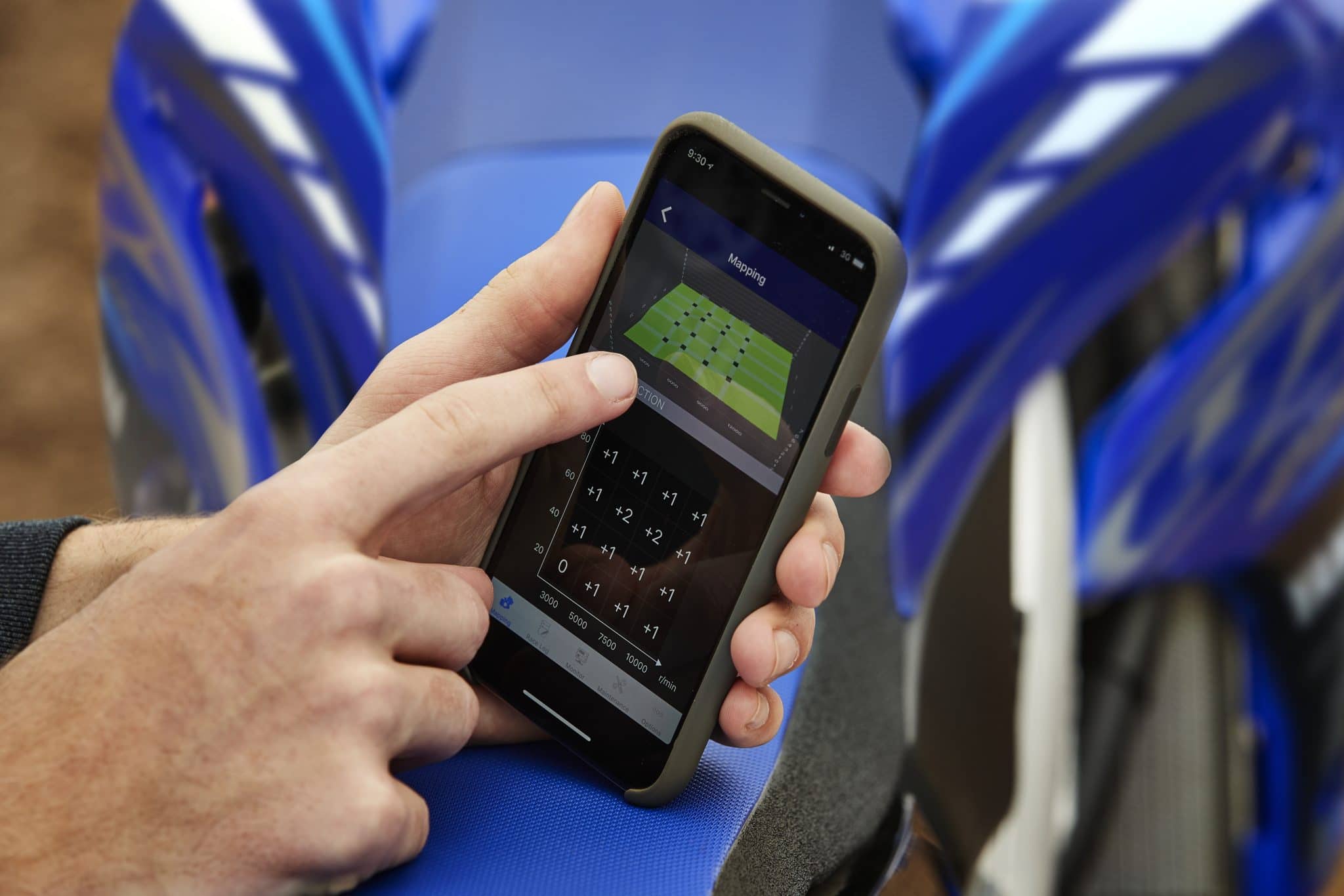 Die Yamaha YZ450F war das erste Motocross-Motorrad mit integrierter Konnektivität. Sie ermöglichte die kabellose Feinabstimmung des Motorrads über ein Smartphone. Auch das 2020er Modell führt im Bereich digitaler Technologie das Feld an. Nach dem Herunterladen der kostenlosen Power Tuner-App für IOS- oder Android-Geräte können YZ450F-Fahrer oder -Mechaniker das Kraftstoff-/Luftgemisch und den Zündzeitpunkt problemlos definieren und so das Motorrad auf verschiedene Strecken und