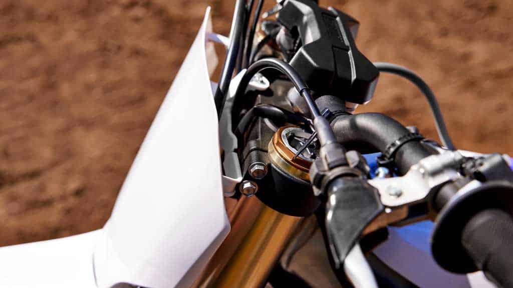 Die YZ450F ist mit hochwertigen KYB-Federelementen ausgestattet, die sich durch hervorragende Dämpfung und beständige Performance auszeichnen. Das macht sie zu einer perfekten Wahl für Fahrer, die in verschiedensten Geländeformen konkurrieren wollen.