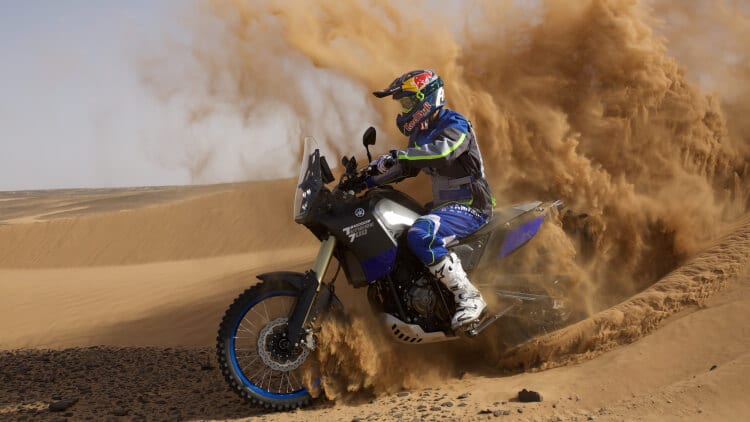 In ihm bestens bekannten Gefilden demonstriert Stéphane Peterhansel die Möglichkeiten des Ténéré 700 World-Raid-Prototyps in schwierigstem Gelände. Von enormen Dünen bis hin zu felsigem Gelände und allem denkbaren Terrain dazwischen stellt der Prototyp des Ténéré 700 World-Raid seine unglaubliche Anpassungsfähigkeit unter Beweis.
